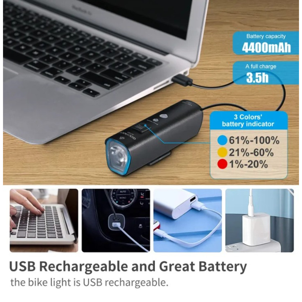 Фара GACIRON V9M-1000 - легкая, компактная и мощная с реальной светоотдачей 1000 люмен и емкостью аккумулятора 4400 мАч. Световой поток 1000 люмен со специальной линзой TIR создает конус, широко освещает всю площадь перед вашим байком. У Фары есть интеллектуальный режим - Датчик света автоматически использует режим медленной вспышки для дневной езды и режим 500 лм для езды вечером или ночью. Датчик движения автоматически выключит свет, если ваш байк стоит на месте. Универсальное крепление на рули размером от 20 до 35 мм), совместим с аэродинамическими рулями, вращающийся на 360 °.