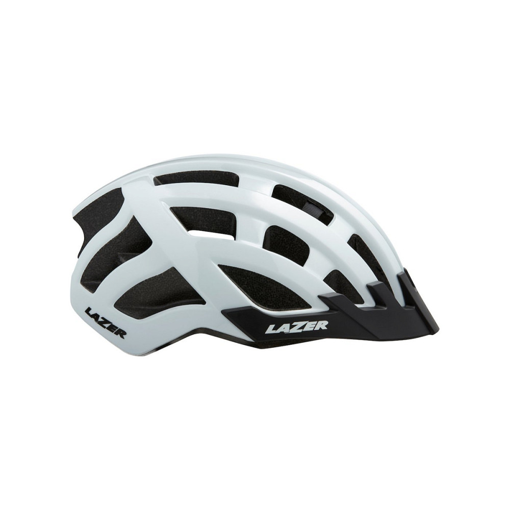 Велошлем Lazer Compact с системой Turnfit ® Plus (предотвращает появление "горячих" точек или точек давления, выполняя регулировку по всей окружности головы), универсальный размер (54-61 см), вес 320 г, 21 вентиляционное отверстие. Компактный шлем обеспечивает комфорт, безопасность и стиль в привлекательной и недорогой упаковке. Цвет белый.