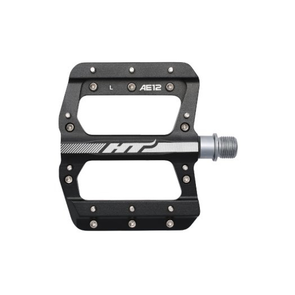 Педали HT AE12 созданы для ценителей максимальной надежности и комфорта. За счет технологии EVO — эти педали просты и удобны в обслуживании. Они не требуют тщательного ухода, неприхотливы к грязи, а алюминий со специальной обработкой препятствует коррозии. Всего 17 мм высоты профиля заметно снижают центр тяжести педали, что помогает в управляемости. А алюминиевая платформа, имеющая 10  сменных шипов на каждую сторону, достаточно прочна, для того чтобы выдержать удары камней, неизбежно возникающие во время катания по сложным участкам трасс. Отличный вариант для тех, кто выжимает все соки из своего велосипеда.