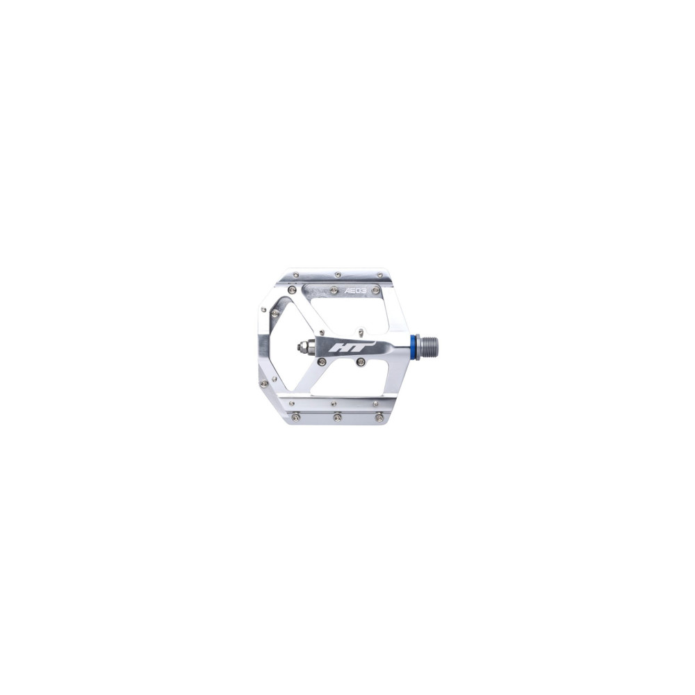 Педали HT AE03 созданы для ценителей максимальной надёжности и комфорта. За счет применения технологии EVO — эти педали станут для вас простыми и удобными в обсуживании. Они не требуют тщательного ухода, не прихотливы к грязи, а специально обработанный алюминий на станках с ЧПУ препятствует коррозии. Всего 11 мм высоты профиля заметно снижают центр тяжести педали, что положительным образом сказывается на управляемости. А алюминиевая платформа, имеющая 10 сменных шипов на одну сторону, достаточно прочна, для того что бы выдержать удары камней, неизбежно возникающие во время катания по сложным участкам трасс. Отличный вариант для тех, кто выжимает все соки из своего велосипеда.