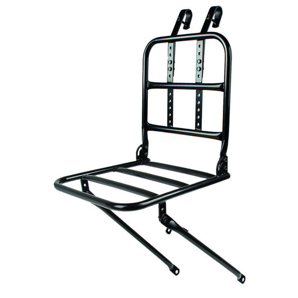NEW, стальные трубки 16мм, со спинкой, складной, погрузочная площадь 30х30см, крепление к передней вилке и рулю, для 24-28" велосипедов, черный.