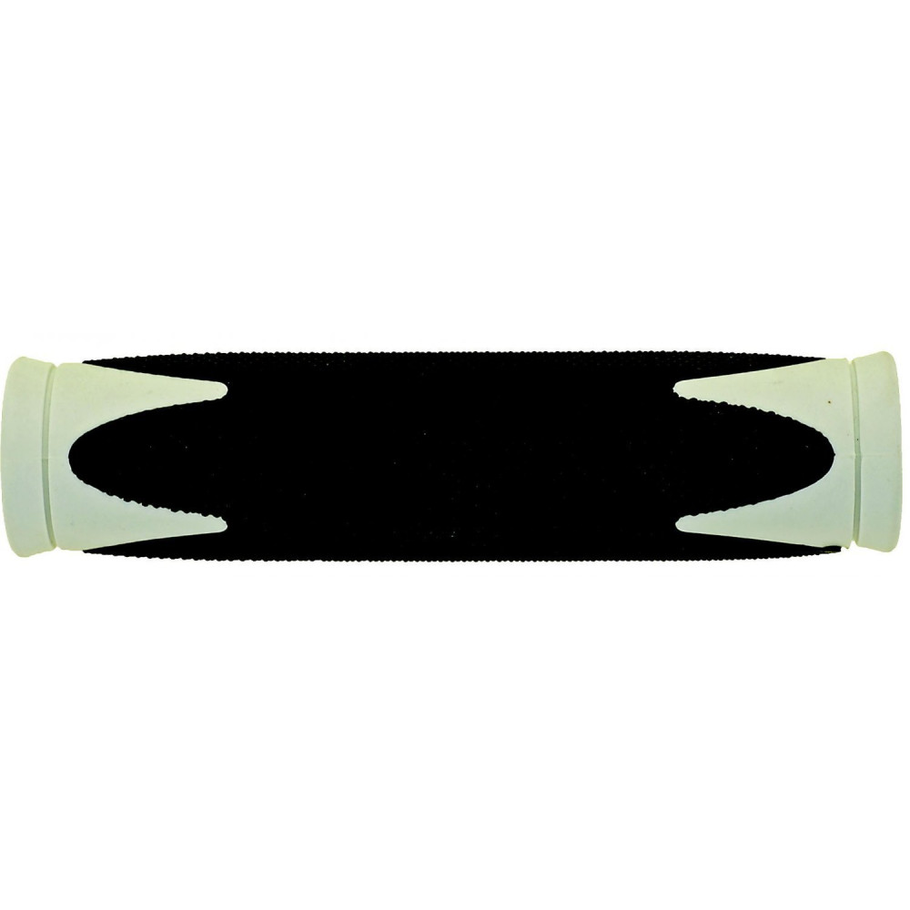 Ручки на руль VELO резиновые, двухкомпонентные, хорошо поглощают вибрацию, 130мм, 94г/пара, черно-белые
