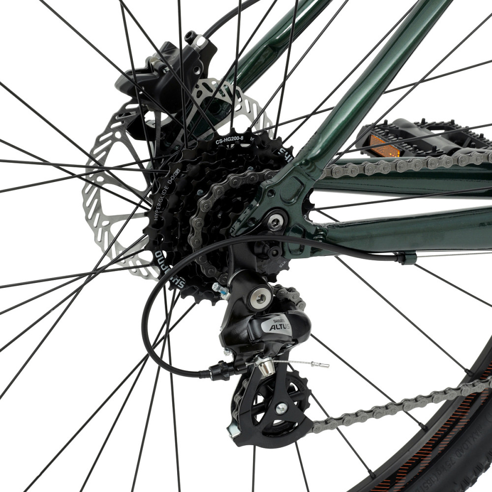 Амортизационная вилка Hagen 362 MLO с ходом 100 мм и ногами диаметром 32 мм сглаживает все мелкие неровности трассы, а блокировка облегчает подъемы в горку