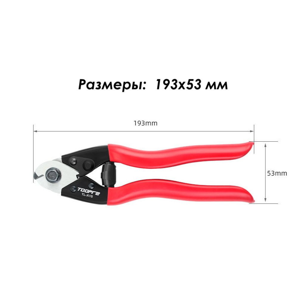 Размеры ножниц составляют 193 на 53 мм, что делает их компактными и удобными в использовании. Это позволяет легко манипулировать инструментом и проводить точные и аккуратные срезы тросов и рубашек.