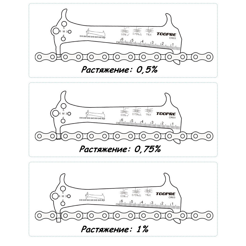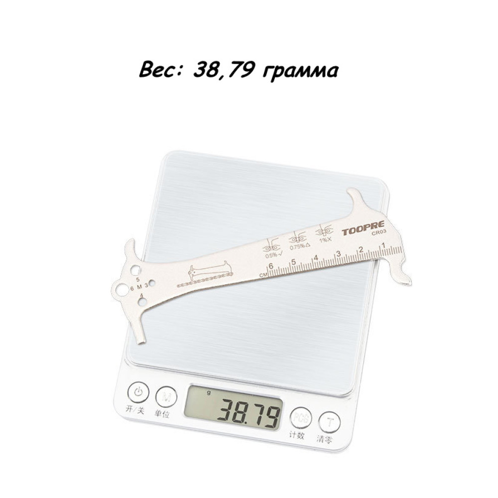 Этот инструмент изготовлен из высококачественной стали и обладает тремя различными значениями износа цепи: 0,5%, 0,75% и 1%. Простота использования этого индикатора сделала его незаменимым и удобным для каждого велосипедиста.