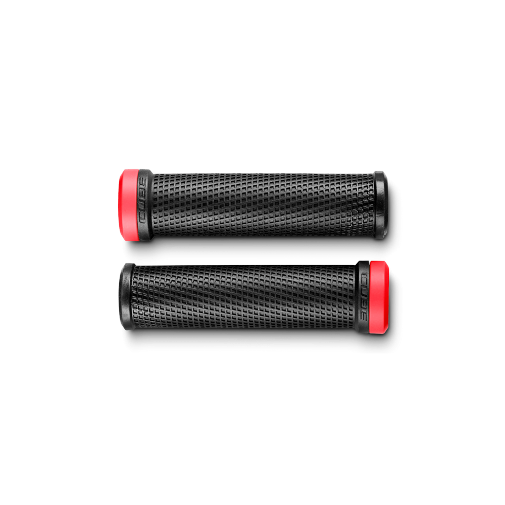 Прочные и легкие грипсы для горных велосипедов от CUBE. Рисунок обеспечит хорошее сцепление даже в тяжелых погодных условиях. Алюминиевый зажим на внутреннем конце.