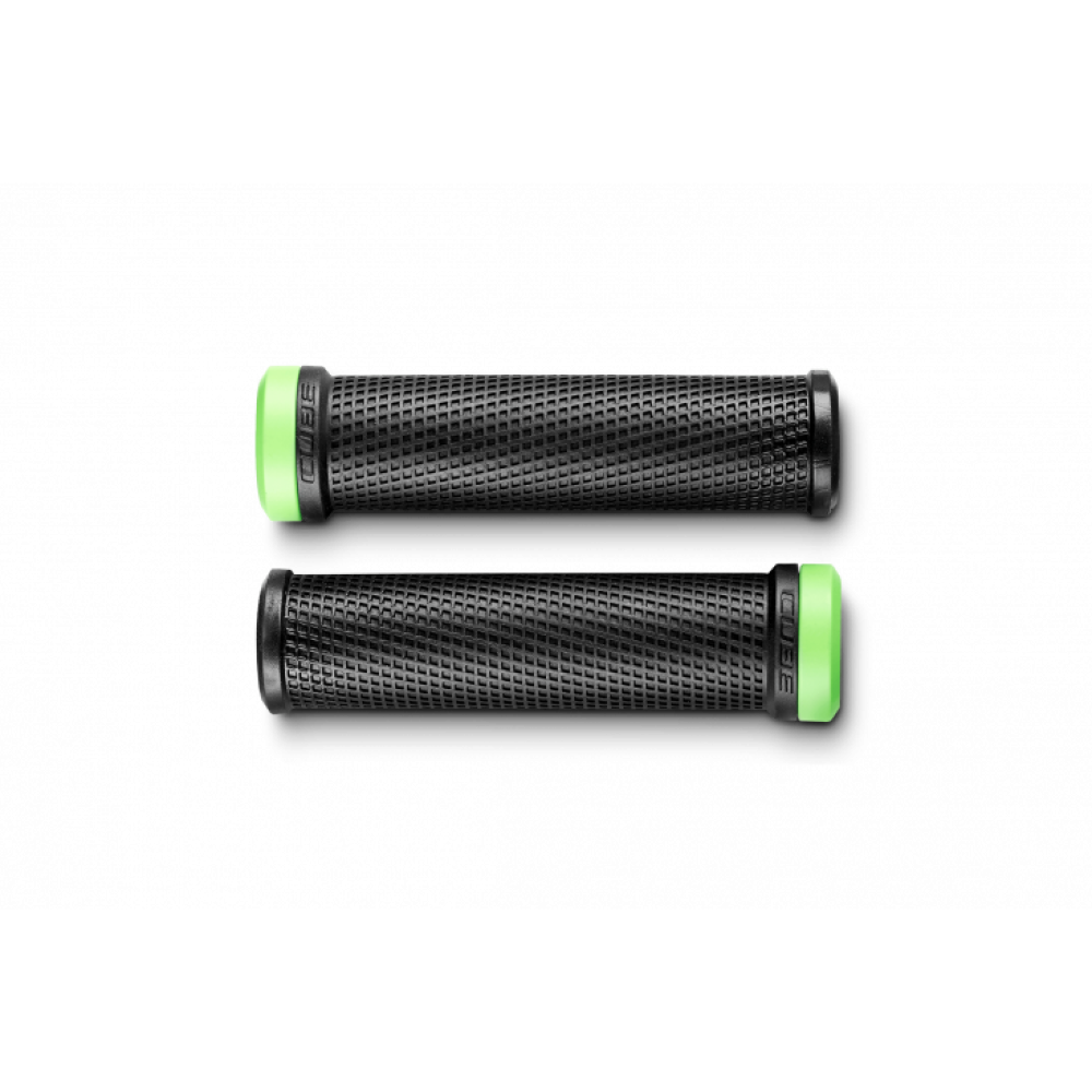 Прочные и легкие грипсы для горных велосипедов от CUBE. Рисунок обеспечит хорошее сцепление даже в тяжелых погодных условиях. Алюминиевый зажим на внутреннем конце.