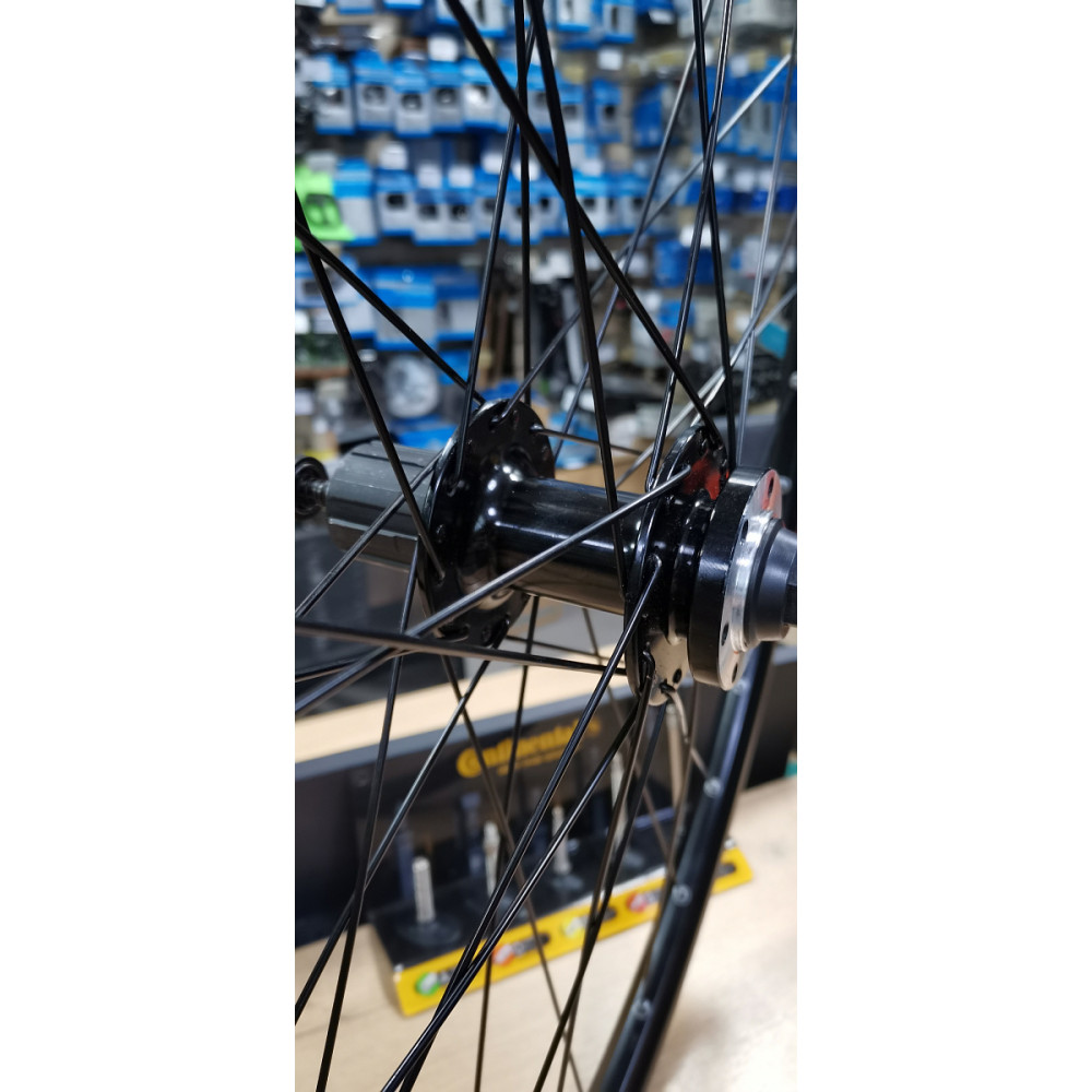 Заднее колесо велосипеда 27 дюймов собрано на алюминиевом ободе Remerx Top Disk и втулке Shunfeng.