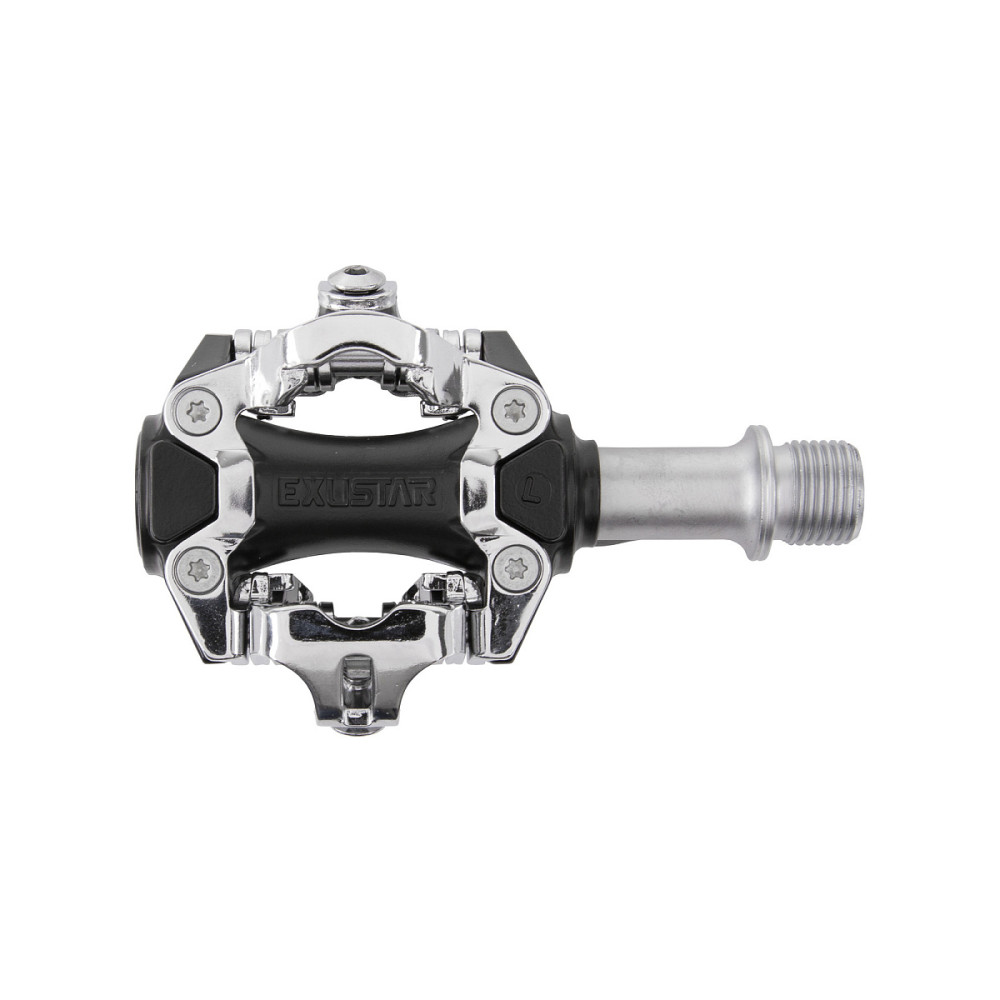 Педали алюминиевые контактные, ось Cr-Mo. Совместимость с стандартом Shimano SPD-совместим. 360гр, серо-черные E-PM211 EXUSTAR
