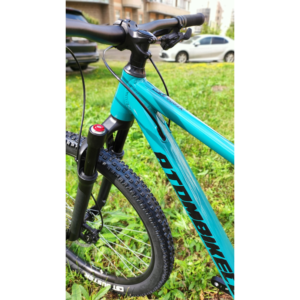 | Вес велосипеда14.43 | Вилка (передний амортизатор)ATOM RADUIM32 AIR 29" HLO AIR 100mm; ось 15х110, Конический шток, ноги вилки алюминий 7075, черная анодировка | ВыносATOM BALLISTIC, Длина 45mm, диаметр 35mm, алюминий 6061 T6 |
