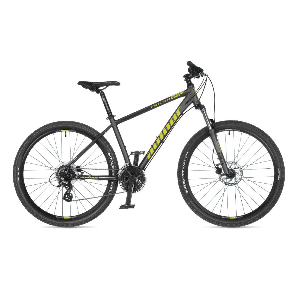 Один из недорогих хардтейлов от Author. Импульс оснащен прочными колесами 27,5 дюймов с двойными ободами Author Xenon, обутыми в полусликовые покрышки Rocket; крепкой и одновременно легкой алюминиевой рамой из алюминиевого сплава 6061; мощными дисковыми гидравлическими тормозами Тектро Аурига. Из остального оборудования стоит отметить амортизационную вилку RST Gila с механической блокировкой хода и трансмиссию Shimano начального уровня Tourney/Altus на 24 передачи. Удобные компоненты кокпита, такие как седло AUTHOR Courier и руль с небольшим подъемом в 8 градусов призваны обеспечить должный уровень комфорта при поездке и хорошую управляемость велосипеда. Это горный прогулочный велосипед с комфортной посадкой, удобным рулем и сиденьем