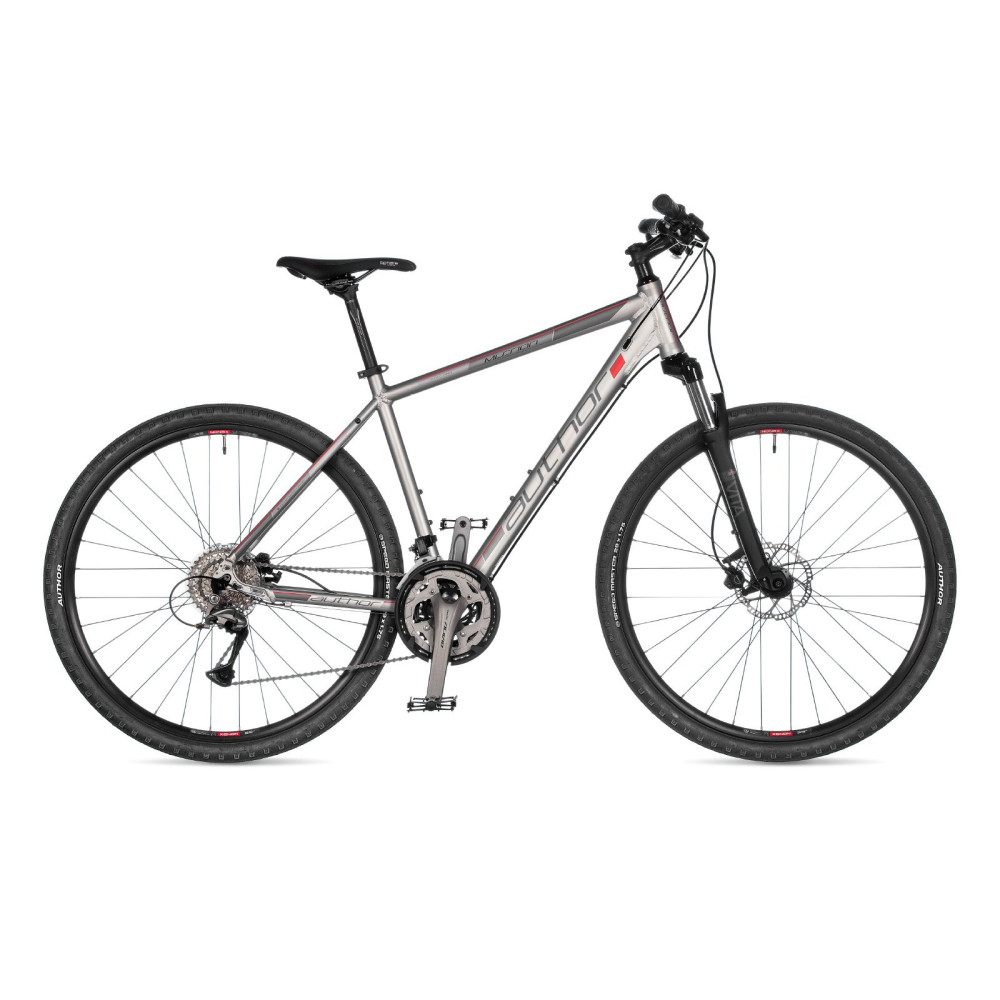 Author Mission оборудован 27-ми скоростной трансмиссией Shimano Alivio, алюминиевой рамой с тройным баттингом, масляной вилкой и дисковыми гидравлическими тормозами. Благодаря этим высококачественным и надежным компонентам, велосипед получился легким, накатистым, маневренным и удобным в управлении. Это кроссовый (так называемый "гибридный") велосипед с комфортной посадкой, удобным рулем и сиденьем