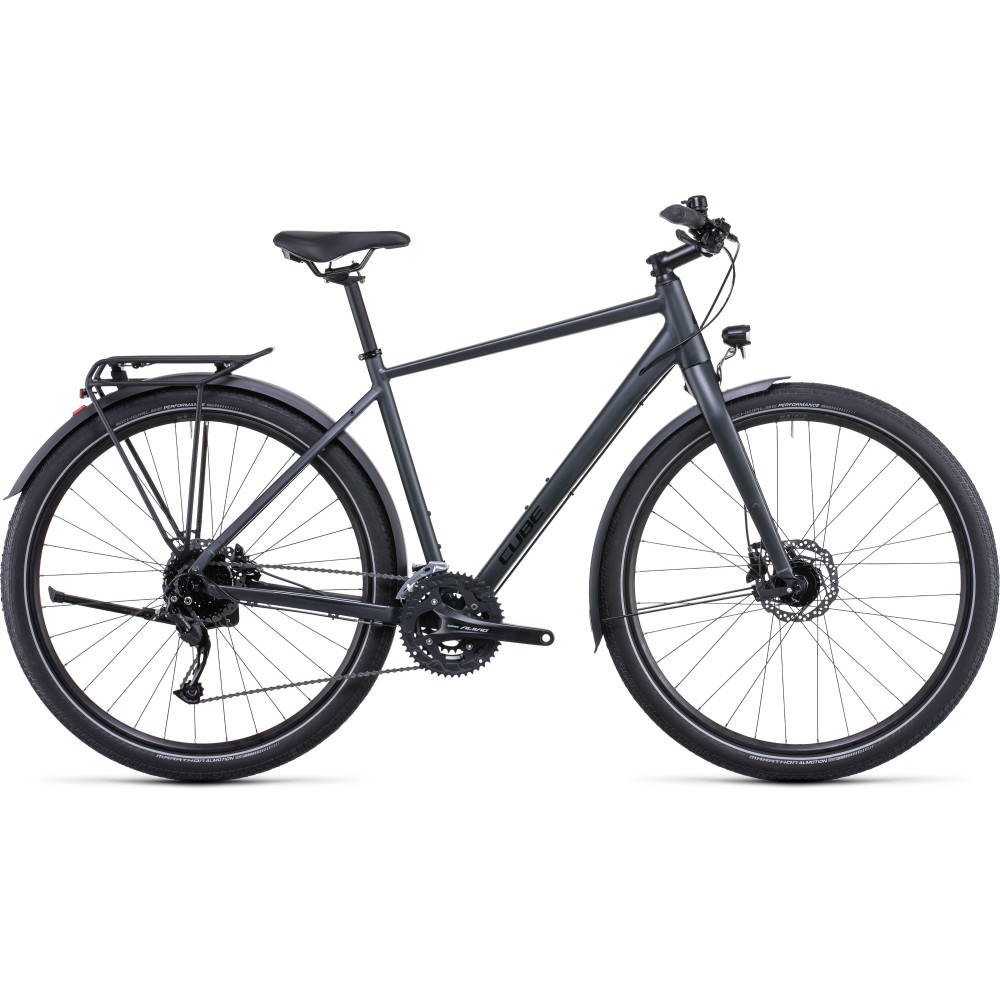 Когда вы выбираете CUBE Travel, приключение идут бесплатно с велосипедом. Это потому, что мы снабдили его всем, что вам нужно - от полуинтегрированного держателя до полноразмерных брызговиков, подножки и комплекта освещения с приводом от динамо-машины передней втулки. Простое в использовании оборудование Shimano Alivio 3x9 с широким диапазоном скоростей облегчают работу на любом маршруте, а мощные гидравлические дисковые тормоза Shimano обеспечивают безопасную остановку в любую погоду. Остается только один вопрос: куда это вас приведет?