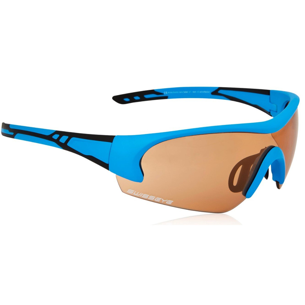 SWISSEYE Очки Move спортивные с регулируемыми носовыми упорами: оправа матово-синий/чёрный, линзы фотохромные оранжево-дымчатые с антибликовым покрытием. Футляр в комплекте.