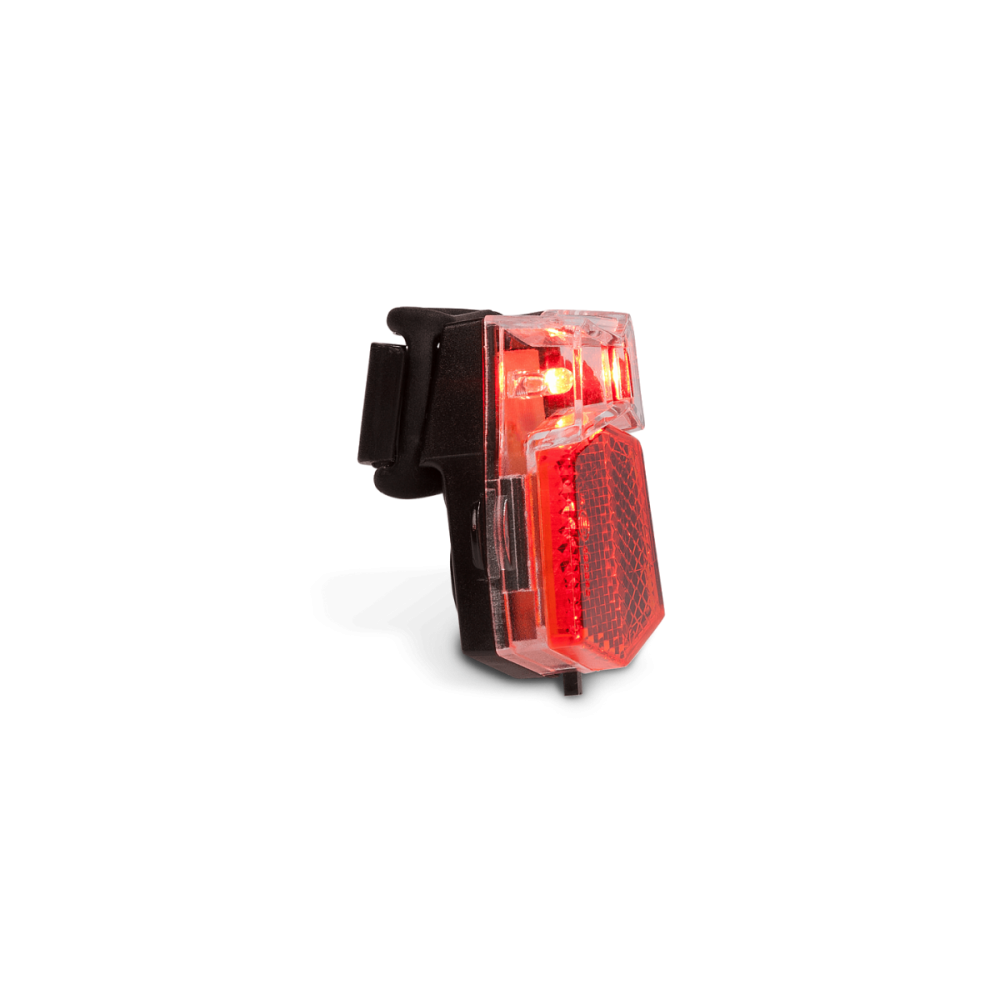 Компактный световой комплект. Один светодиодный передний фонарь с тремя функциями освещения. Может также использоваться в качестве фонарика. Один «красный» светодиод со встроенным отражателем для лучшей видимости. Очень простая установка держателя, которая может быть установлена на трубы различного диаметра (например, на опоры палатки). Оба фонаря являются брызгозащищенными и поставляются с прилагаемыми батареями. В комплект входит: 1x «белый» светодиод с 3 режимами освещения
