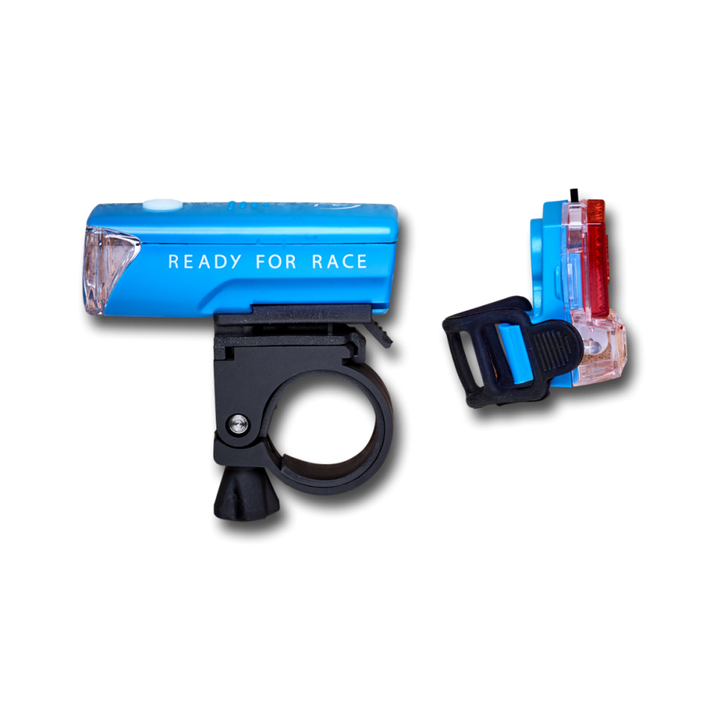 Компактный световой комплект. Один светодиодный передний фонарь с тремя функциями освещения. Может также использоваться в качестве фонарика. Один «красный» светодиод со встроенным отражателем для лучшей видимости. Очень простая установка держателя, которая может быть установлена на трубы различного диаметра (например, на опоры палатки). Оба фонаря являются брызгозащищенными и поставляются с прилагаемыми батареями. В комплект входит: 1x «белый» светодиод с 3 режимами освещения
