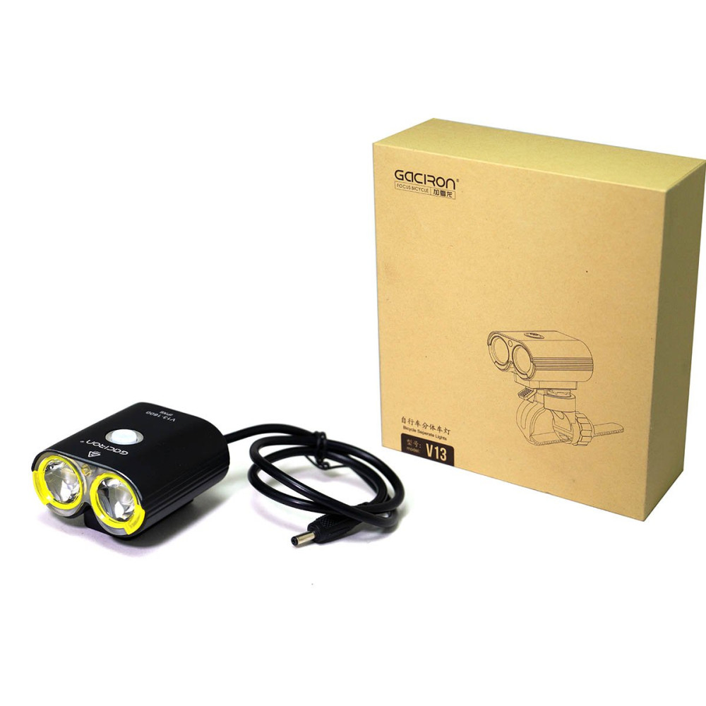 Фара передняя GACIRON V13 1600 lumen, 2диода, 4режима, без аккумулятора, USB, крепление на руль, алюминий черный, выносная кнопка на руль