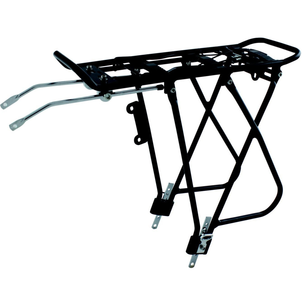 24-29", алюминиевый, для переметной сумки, регулируемый, до 25 кг, сборный, с прижимной пружиной, универсальное крепление, дополнительные боковые дуги, крепление для насоса, крепеж, черный.