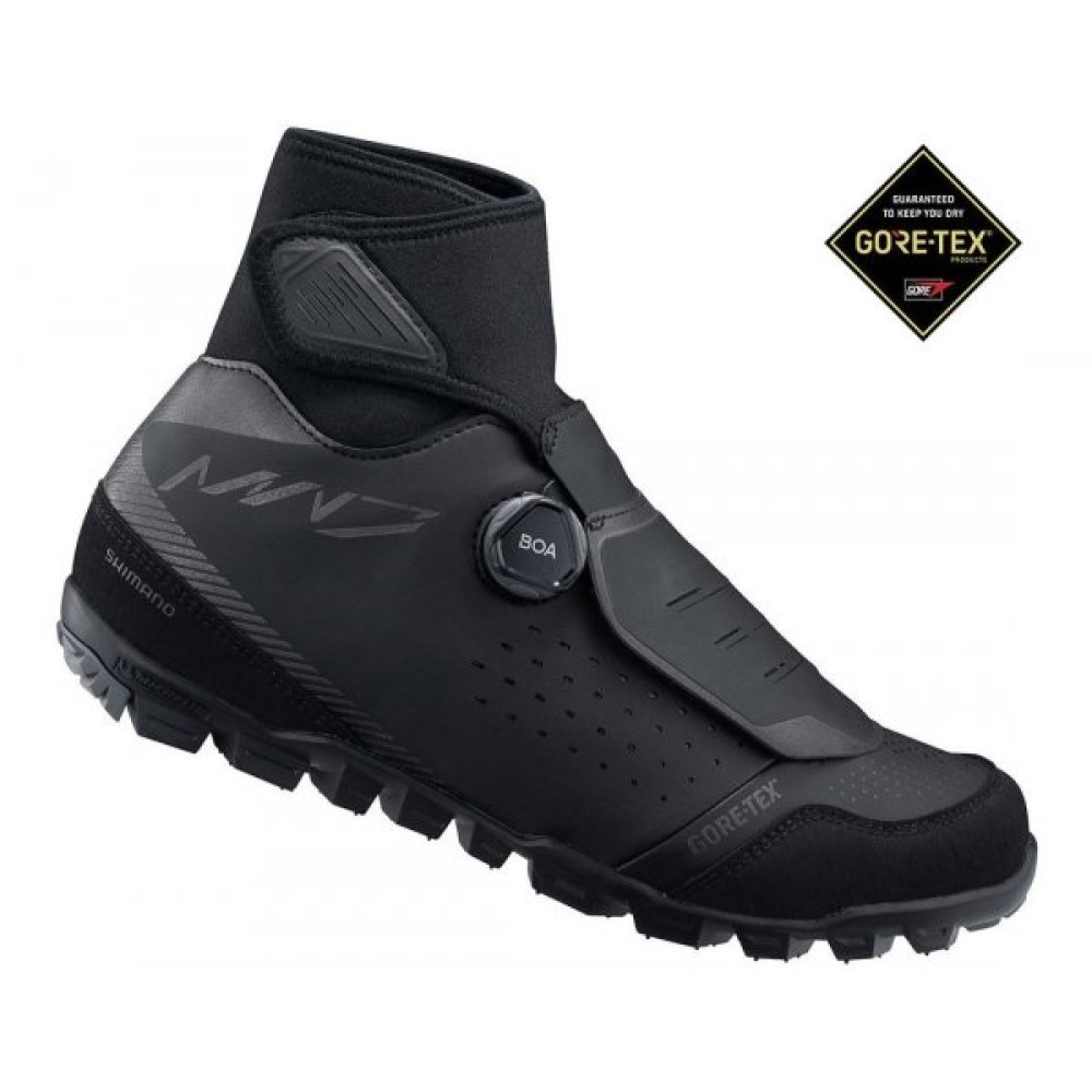 Shimano SH-MW700, это прочные, герметичные, водостойкие и удобные велотуфли, для которых не бывает плохой погоды. Средняя жесткость (индекс 5). Водонепроницаемая изолированная подкладка Gore-Tex Comfort. Конструкция с встроенной защитой шнуровки и высокими манжетами бахил. Защелка BOA L6, для быстрой и точной подгонки по ноге. Отражающая способность на 360 градусов для хорошей заметности. Высокоэффективная резиновая подошва Michelin двойной плотности обладает высой долговечностью и сопротивлением проскальзыванию. Вес 480 грамм