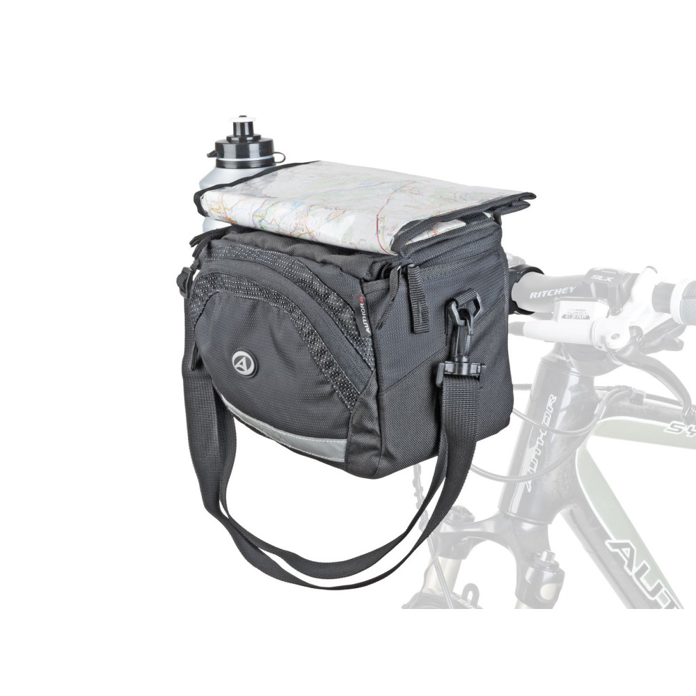 NEW, быстросъемная, регулируемый угол наклона, для руля велосумка на руль A-H735 QRA X7 Author, 25,4/31,8мм, легкое и быстрое крепление с помощью системы QRXTM, NYLON 600D/420D с полиуретановым покрытием, V=5,4л, 23х13х18 см, несколько отдельных карманов, прозрачное отделение для карты, плечевой ремень, отделение для фляги, светоотражающие элементы
