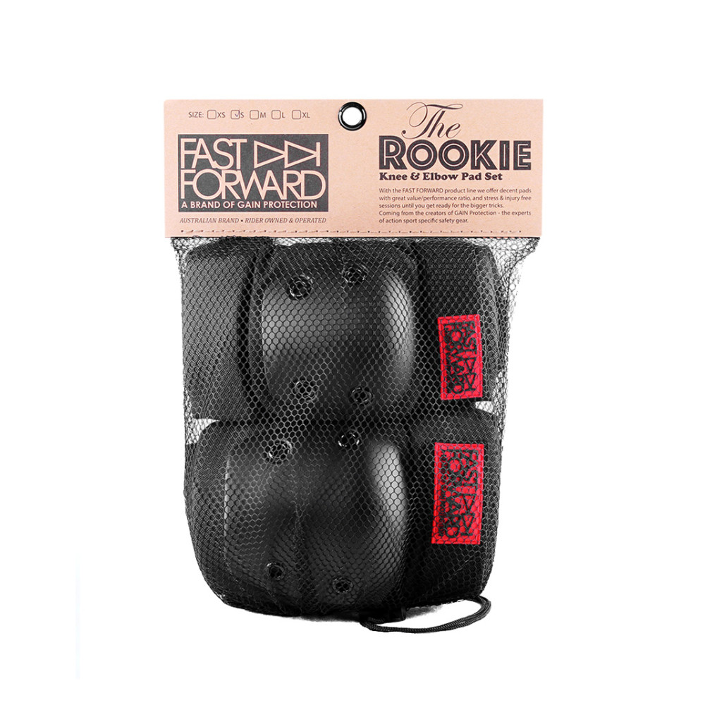 Наборы наколенников и налокотников Fast Forward Rookie — это классические протекторы для коньков, самокатов и велосипедов. Их прямая форма позволяет гонщикам полностью выпрямить руки и ноги, при этом подушечки не оказывают слишком большого давления на область предплечий/голени.