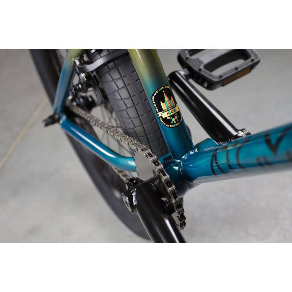 ATOM ICON - наша ТОПовая командная модель. При его производстве максимум компонентов выполнены из cro-mo сплава. Это наша гордость и BMX достойный про-райдеров. Его стихия парк, стрит и агрессивное катание. Градусы, гридны, слайды – он создан именно для этого. Рама, вилка с конусными трубами ног и 2х компонентный руль целиком выполнены из хором-молибдена. Косынки на раме и мощные перемычки - надежные элементы усиления рамы. Они сочетаются с современными интегрированной рулевой и кареткой MID BB c 19 мм осью. Широкие двойные обода 34 мм и усиленные стекловолокном педали из специального полимера. Лёгкие алюминиевые втулки (задняя на закрытых пром подшипниках) для снижения веса, широкие покрышки для мягких приземлений и наши трёхкомпонентные cro-mo шатуны. Бонусом в комплекте пара правильных пег с пластиковым покрытием для отличного скольжения и одноболтовое pivotal седло.